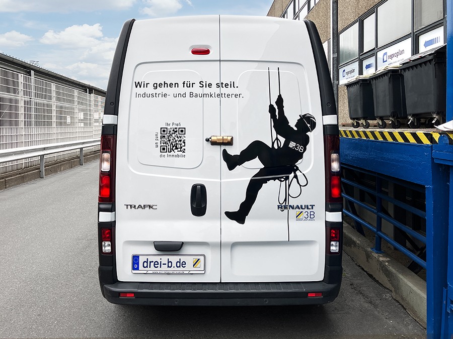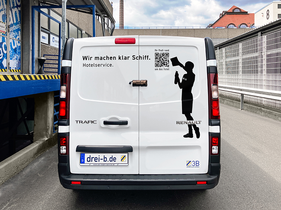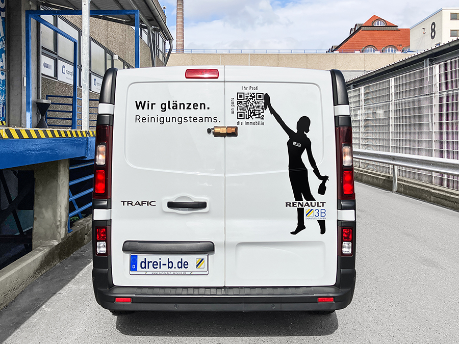 Als Full-Service-Dienstleister im Bereich Werbetechnik bietet reproplan individuelle Lösungen für Flottenbeschriftungen, Folienplots und industrielle Kennzeichnung. Ein aktuelles Beispiel ist unser umfangreiches Projekt für 3B Dienstleistung. Für diesen Kunden aus dem Facility Management haben wir in den vergangenen Monaten u.a. 18 Renault Traffic, Master und Kangoo sowie Opel Combo mit einer hochwertigen Fahrzeugbeschriftung ausgestattet. Die Gestaltung basierte auf dem Corporate Design des Unternehmens und kombiniert farbige Folienplots als präzise produzierte Logo-Elemente, Symbole und Schriften. Verschiedene Folienfarben wurden dabei passgenau miteinander kombiniert, um eine klare Symbolik und starke Markenwirkung zu erzielen.