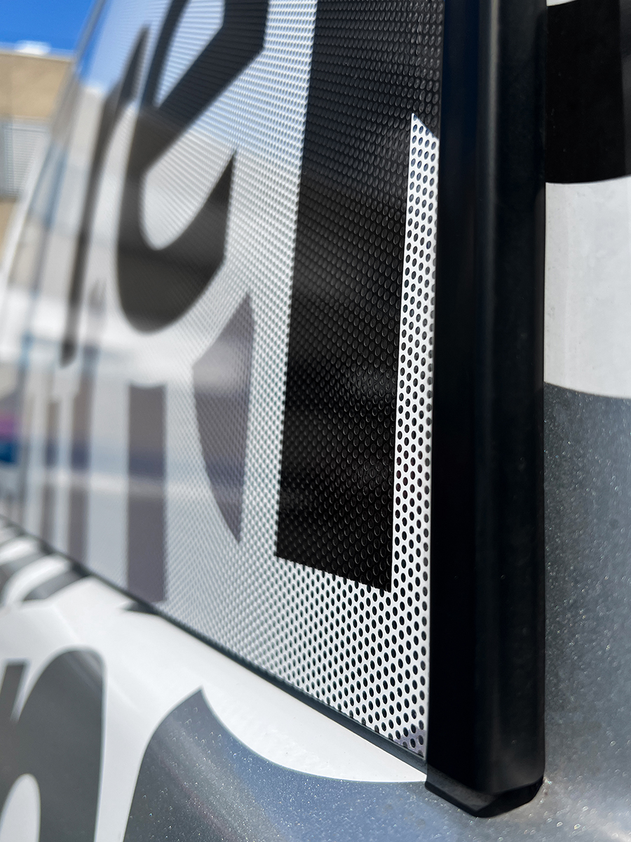 Unsere Fahrzeugfolierung ist einfach zu installieren und lässt sich bei Bedarf auch wieder entfernen, ohne Rückstände zu hinterlassen. Damit ist sie die ideale Lösung für Unternehmen, die ihre Marke effektiv und professionell präsentieren möchten. Ob für einzelne Fahrzeuge oder eine ganze Flotte – mit unserer gelochten Window Graphics Vinylfolie setzen Sie Ihre Werbebotschaft flexibel, auffällig und dauerhaft in Szene. Machen Sie Ihr Fahrzeug zum Blickfang auf jeder Straße!